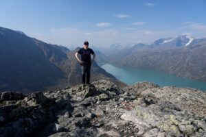 Le Knutshøe est la montagne voisine du célèbre Besseggen, et la randonnée qui y mène est plus courte mais nettement plus difficile que l’originale. Comme il s’agit de l’une des randonnées les plus dangereuses que nous ayons faites, nous avons décidé d’y aller avec le guide de montagne Henric Strandberg de Beito Aktiv, pour une expérience en sécurité.