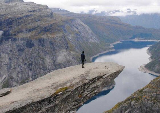 Un plateau rocheux à 604 mètres au-dessus du fjord